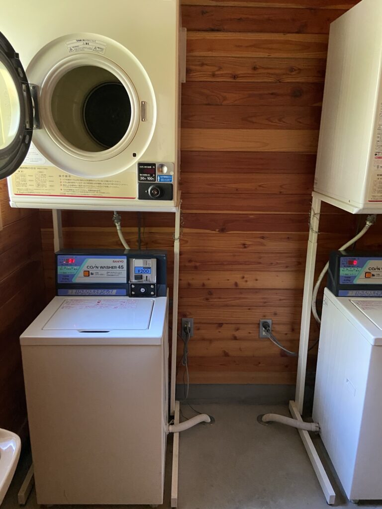 注意としては、キャンプ場にある古い乾燥機は、まぁー乾きません。時間とお金だけ取られるので、洗濯機のみの運用がおすすめです。