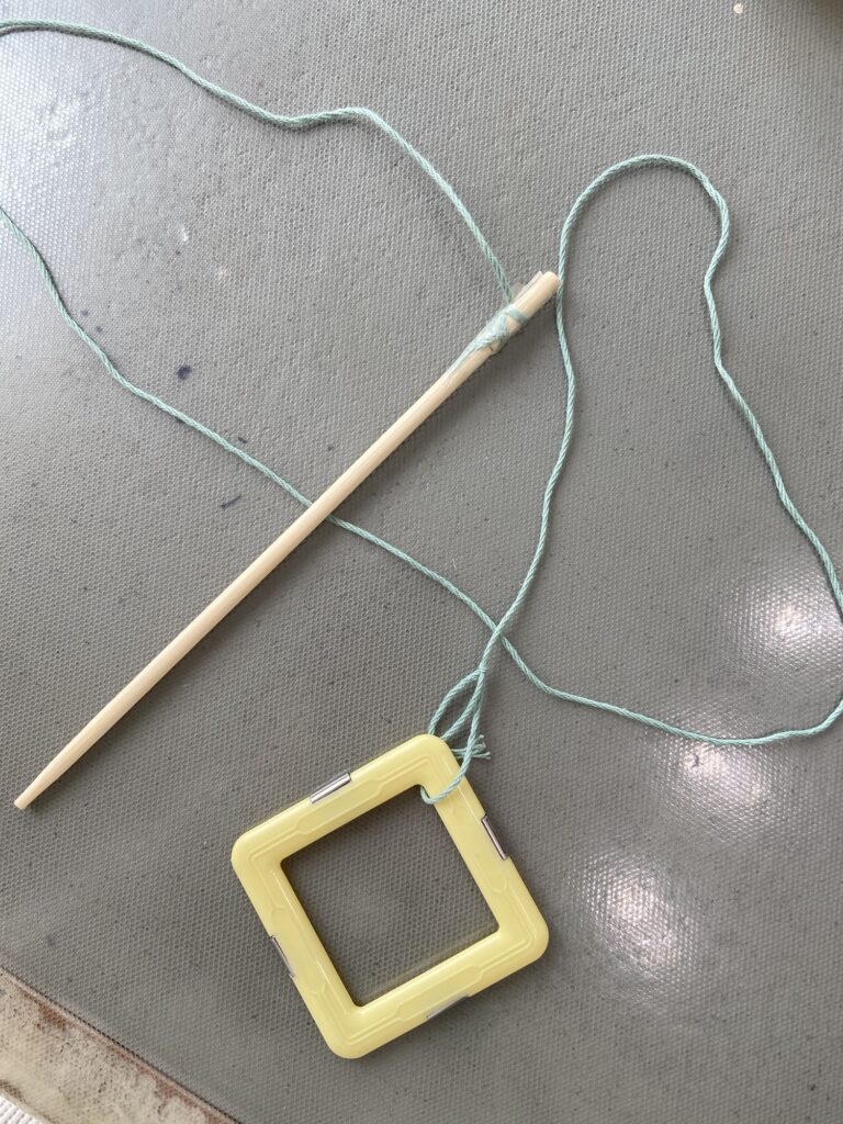 それを毛糸の先に結びつけて“えさ”代わりにしてみました。